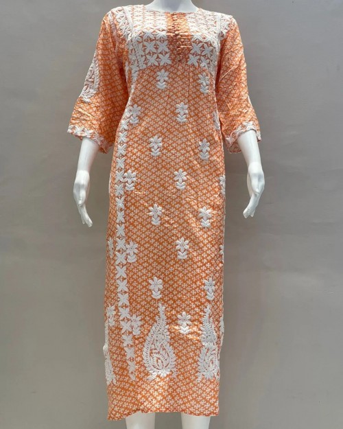 New Qarrat cotton White Handwork Kurti Dress